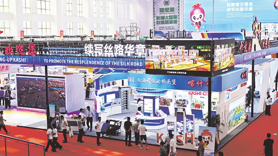 此次参展的非遗展还展现了喀什深厚的文化底蕴和独特的艺术魅力。展区内,秦腔、塔吉克族鹰舞、十二木卡姆、麦西热甫、刀郎舞轮番上演,让观众大饱眼福。特别值得一提的是,国家级非遗表演《英歌舞》和喀什来了个跨界交流,以其独特的魅力和激昂的节奏,“炫燃”喀什古城。此次展会不仅搭建了各国经济互动、交流合作的平台,更展现出喀什作为丝绸之路经济带核心区重要节点的独特魅力和发展潜力。