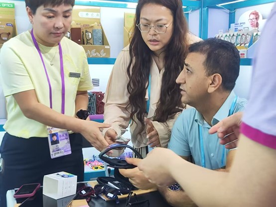 当小编问到面对目前复杂的国际形势,前海无形如何应对时,Paula女士自信地答复:第一就是创新,今年前海无形推出了一系列新产品,如摄像眼镜,可以拍照、录像,在游玩旅行、商务谈判、日常生活中都可以使用,还有一款就是助听眼镜,弱听人士、耳背的老年人都可以使用。还有就是拓展业务,前海无形在去年底今年便对海外业务进行了重新布局,在迪拜、巴基斯坦、香港等设置了业务常驻机构,进行海外业务的拓展,目前的效果非常不错,规避了国际不明朗的因素……