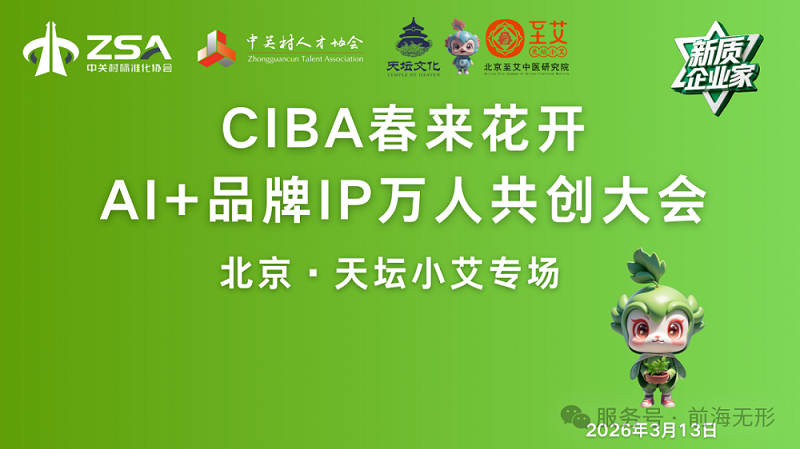 为深入贯彻落实数字经济发展战略,抢抓人工智能技术创新与产业应用机遇,推动 AI 与品牌 IP 领域深度融合、协同发展,由中关村标准化协会、中关村人才协会指导的CIBA 春来花开・AI + 品牌 IP 万人共创大会,于2026年3月13日在北京·天坛举行。